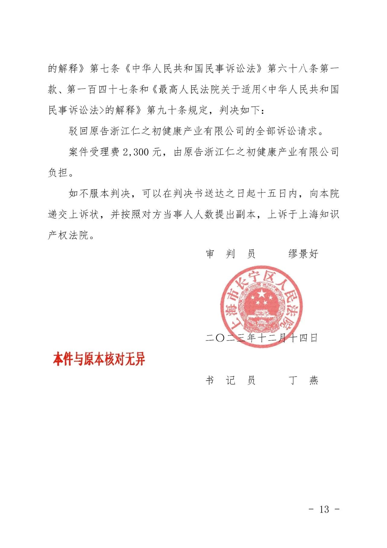 鄂州辉知胜诉佳讯 | “仁之初健康”著作权及不正当竞争纠纷案,法院:驳回全部诉讼请求!
