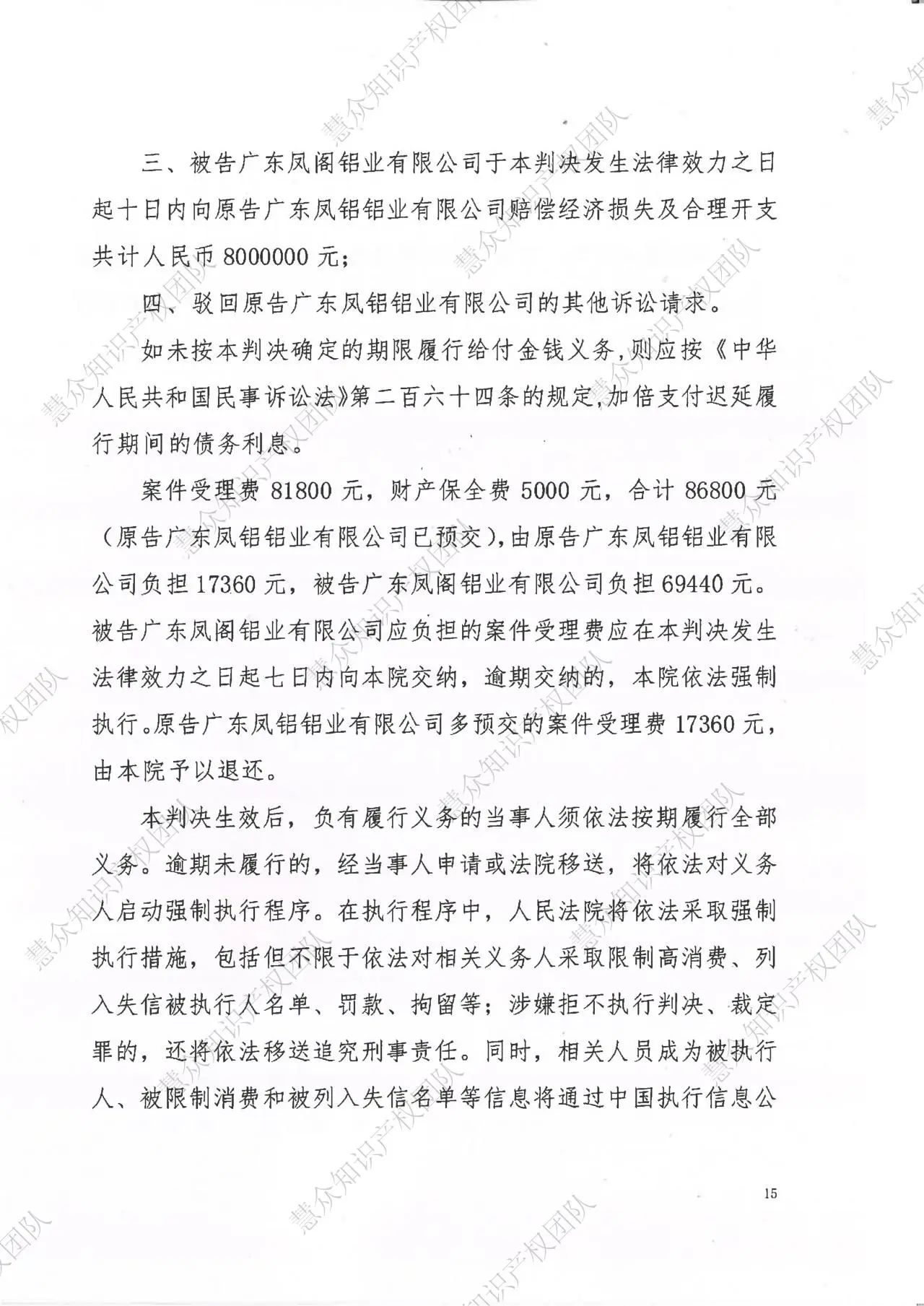 鄂州判赔800万!辉知队代理“凤铝”商标维权案胜诉
